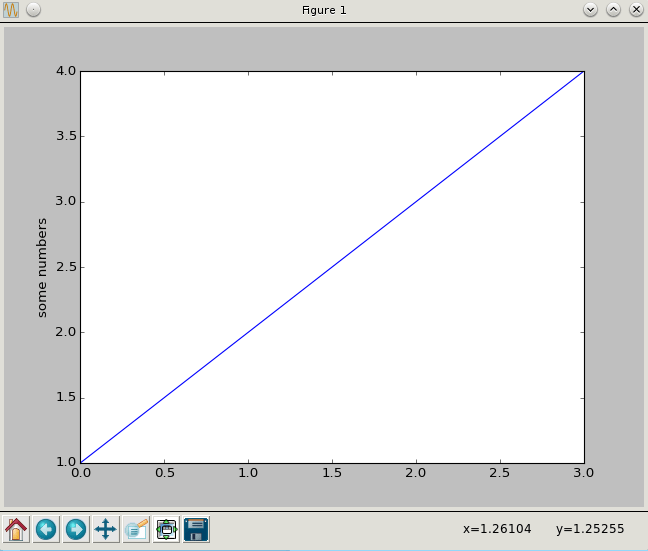 >>> plt.plot([1,2,3,4]) >>> plt.ylabel('some numbers') >>> plt.show() |