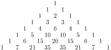 Pascal’s triangle is a triangle where each number is equal to the sum of the one or two numbers above it: