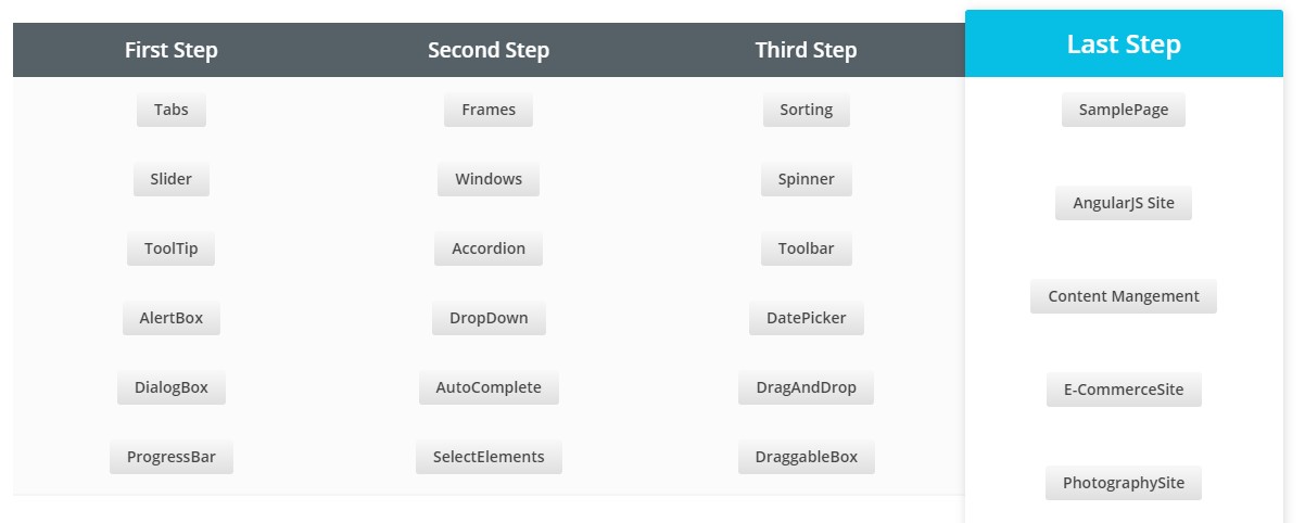 Readers might feel that there are many similar websites in the market and we totally agree with that. There is one thing which makes this testing website different from other automation practice websites that is we have covered different type of components for each category. Example : if anyone clicks on AlertBox, you will find multiple type of Alert Boxes for automation practice.